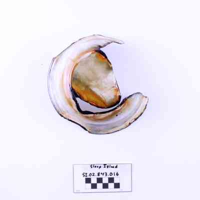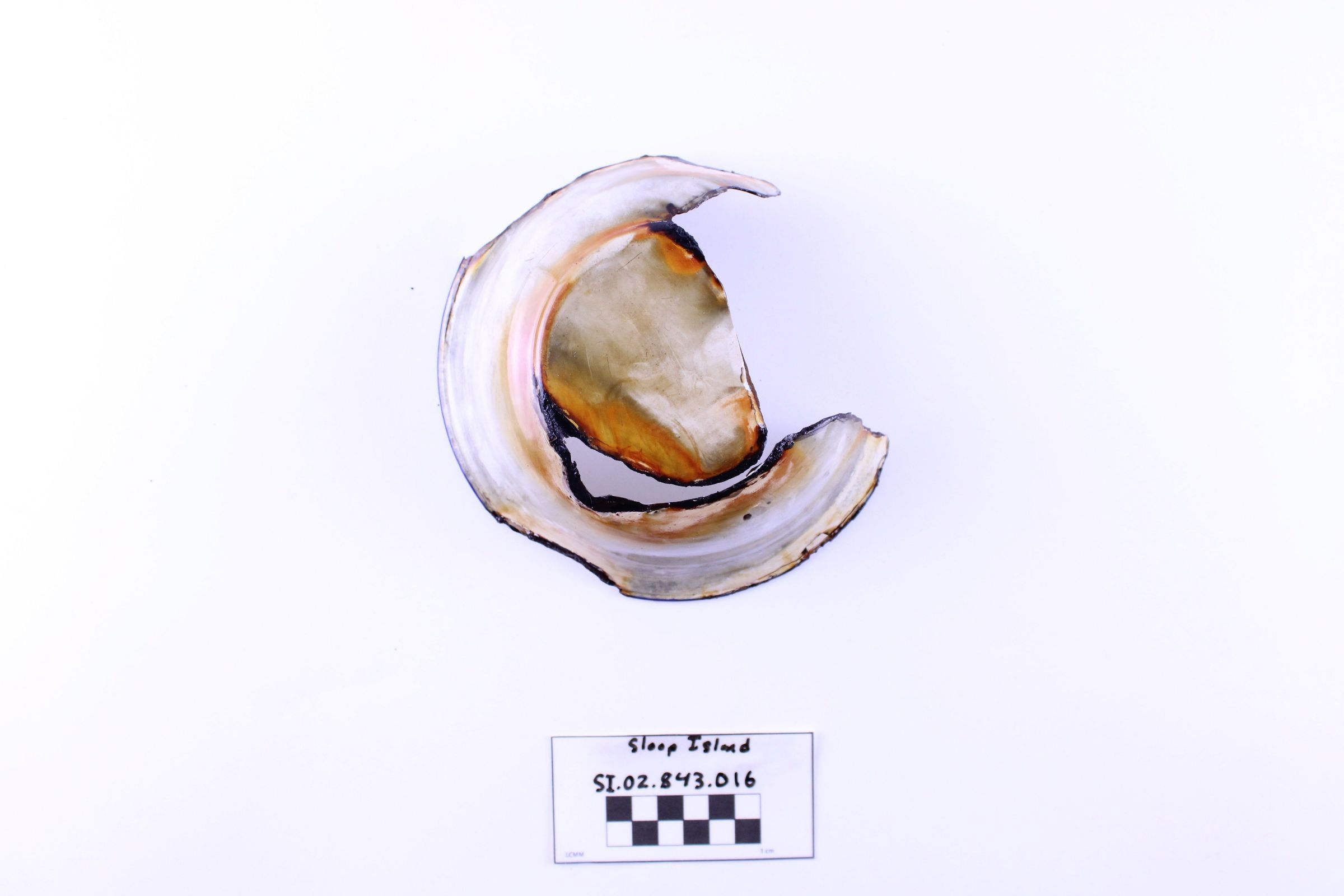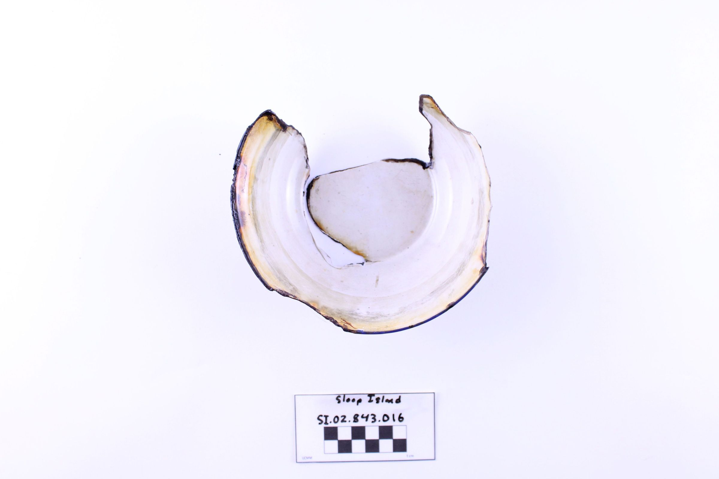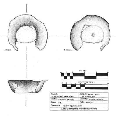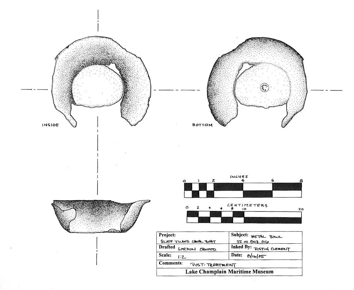 Object SI.02.843.016 is a tinware bowl; there is a small bag of SI.02.843.016 fragments nestled with the object.