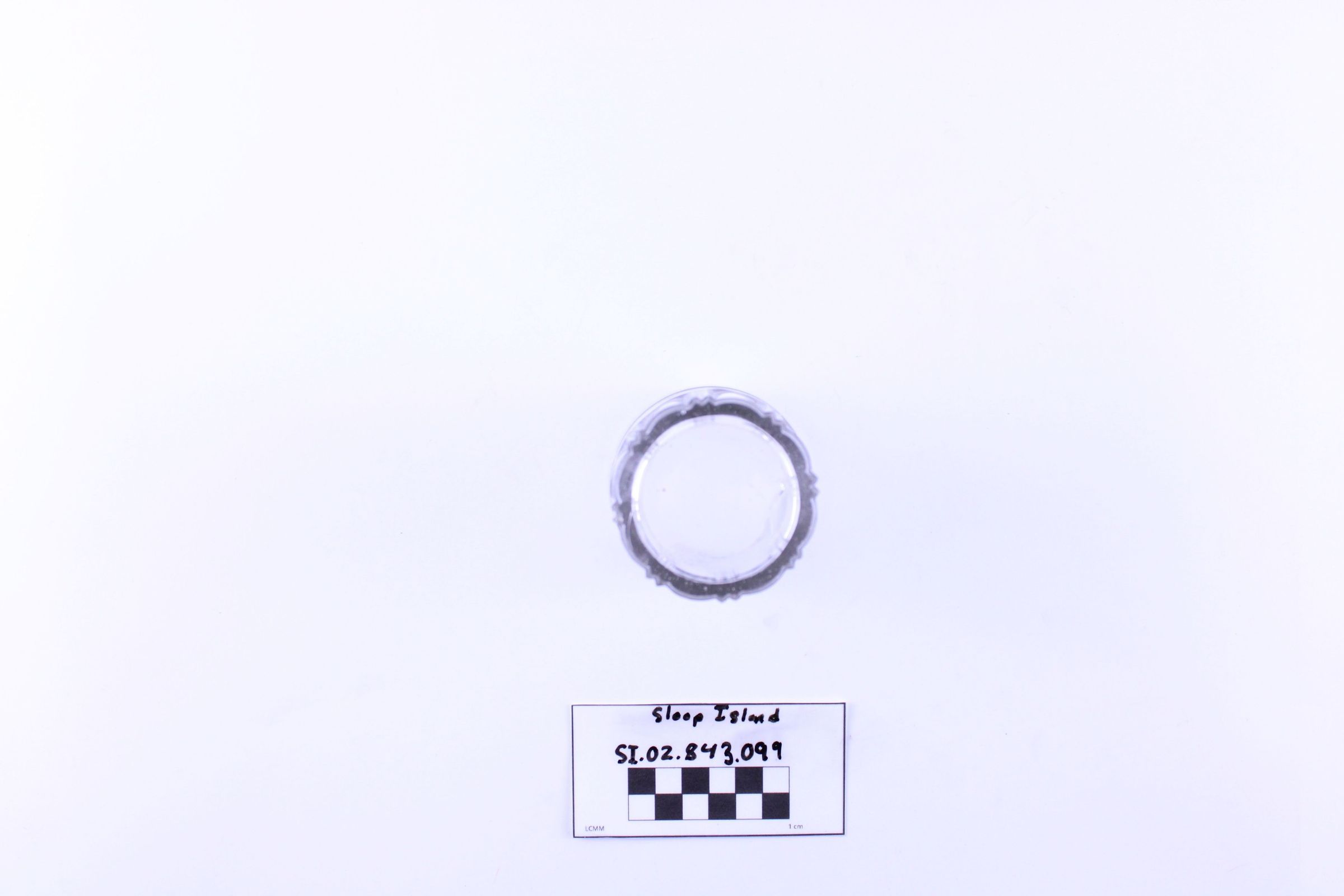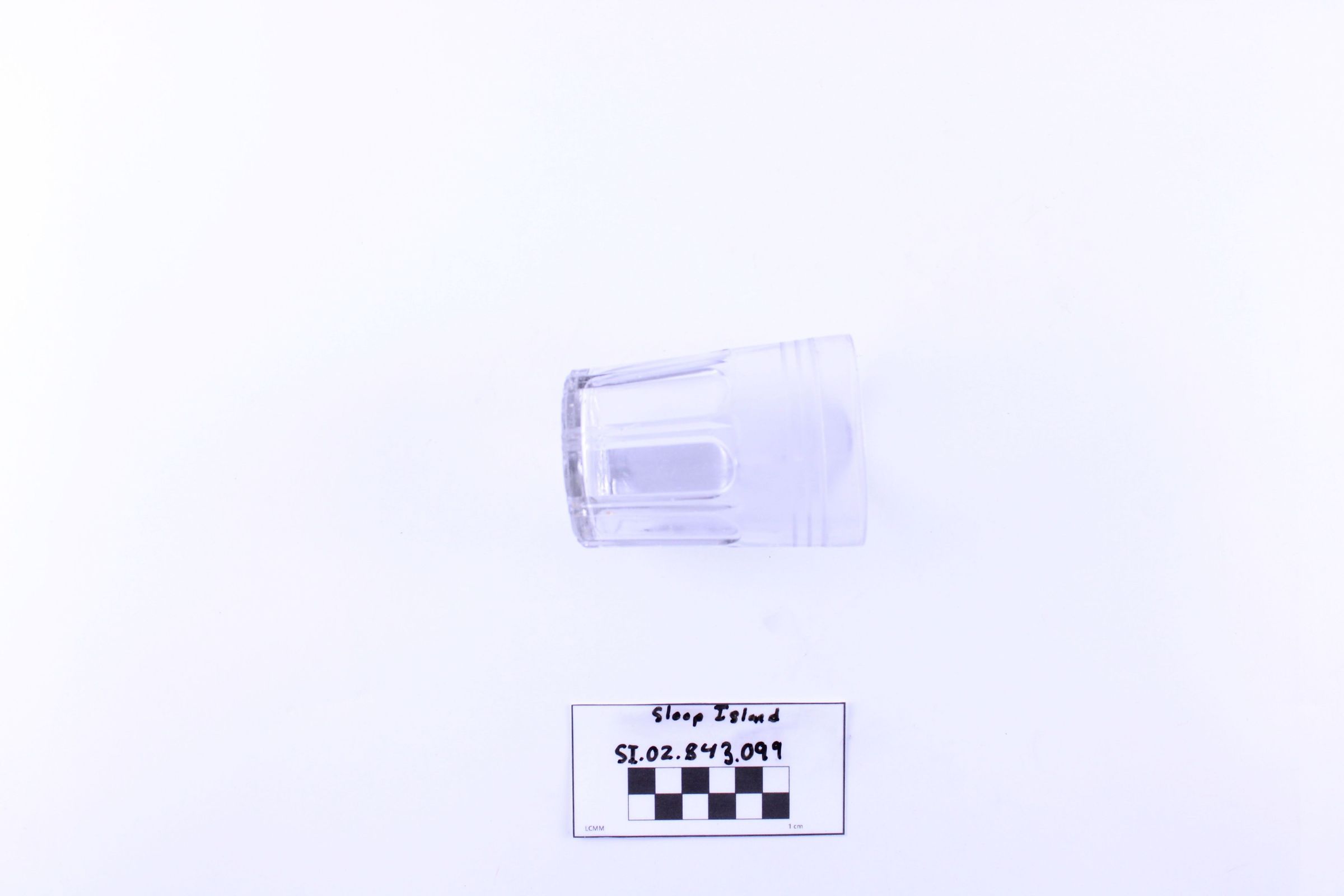Object SI.02.843.099 is a glass tumbler. There are three decorative rings carved into its surface.
