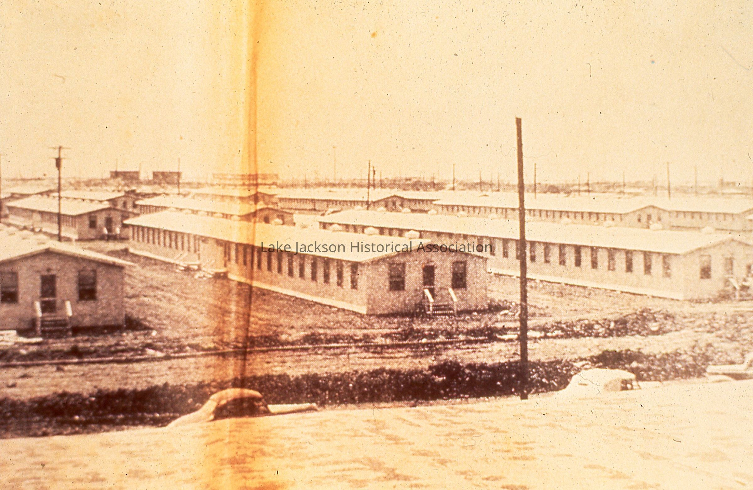 Black and white slide of barracks at Camp Chemical (?).Collection
