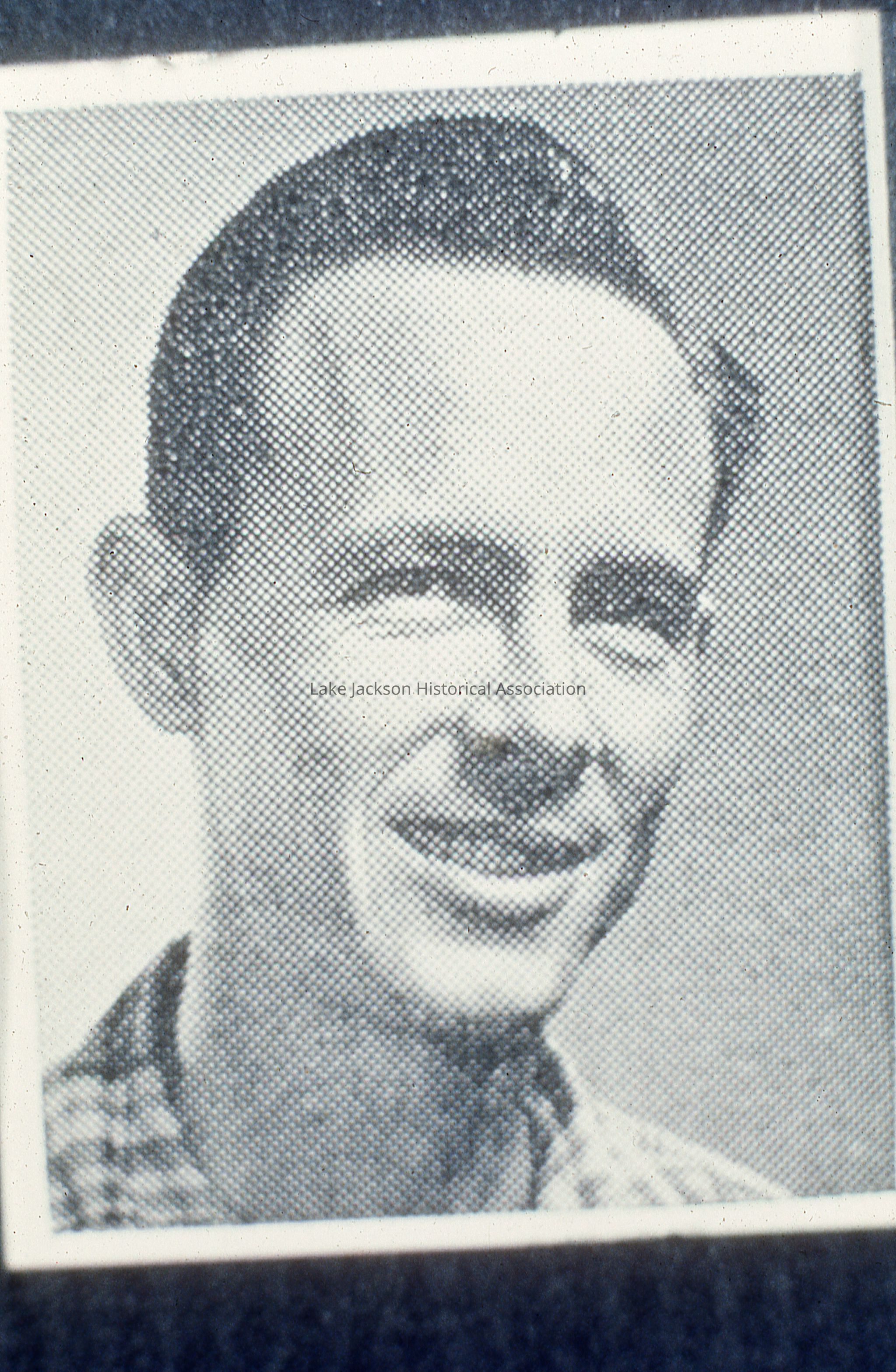 Black and white picture of unidentified man. Picture appears to be taken from a newspaper or magazine.Collection