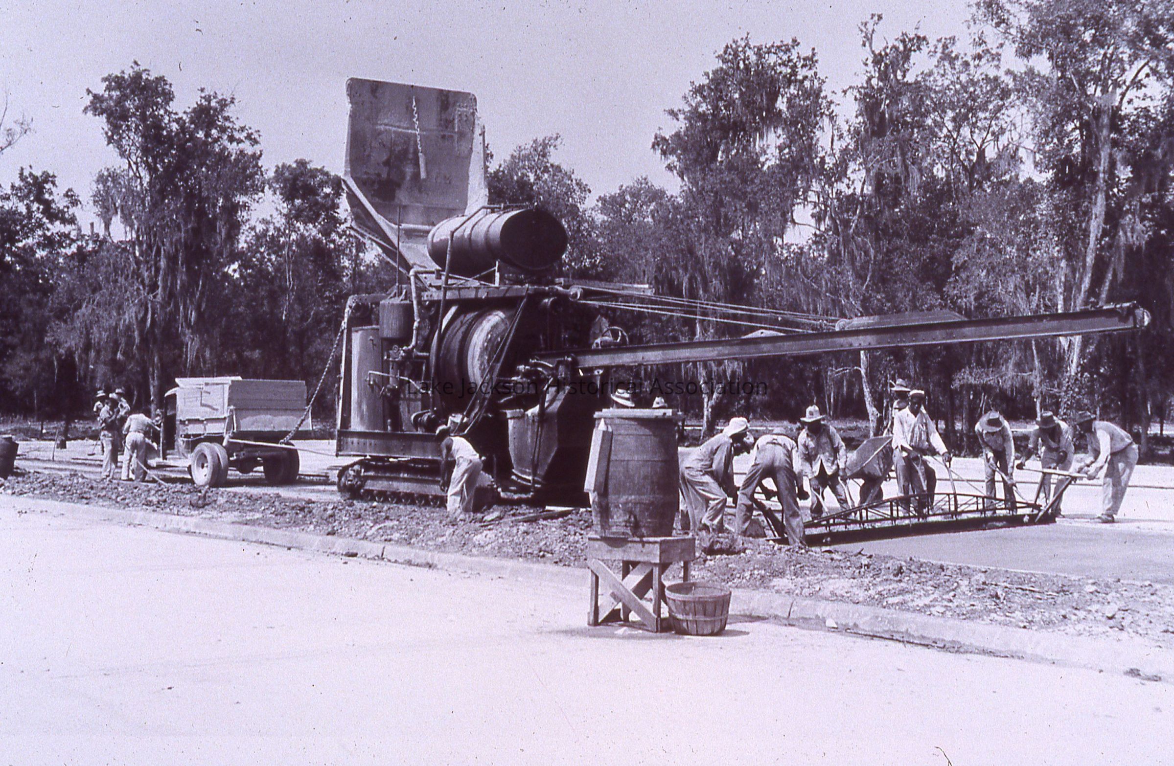 Black and white picture of road-building crew, probably 1940s Lake JacksonCollection