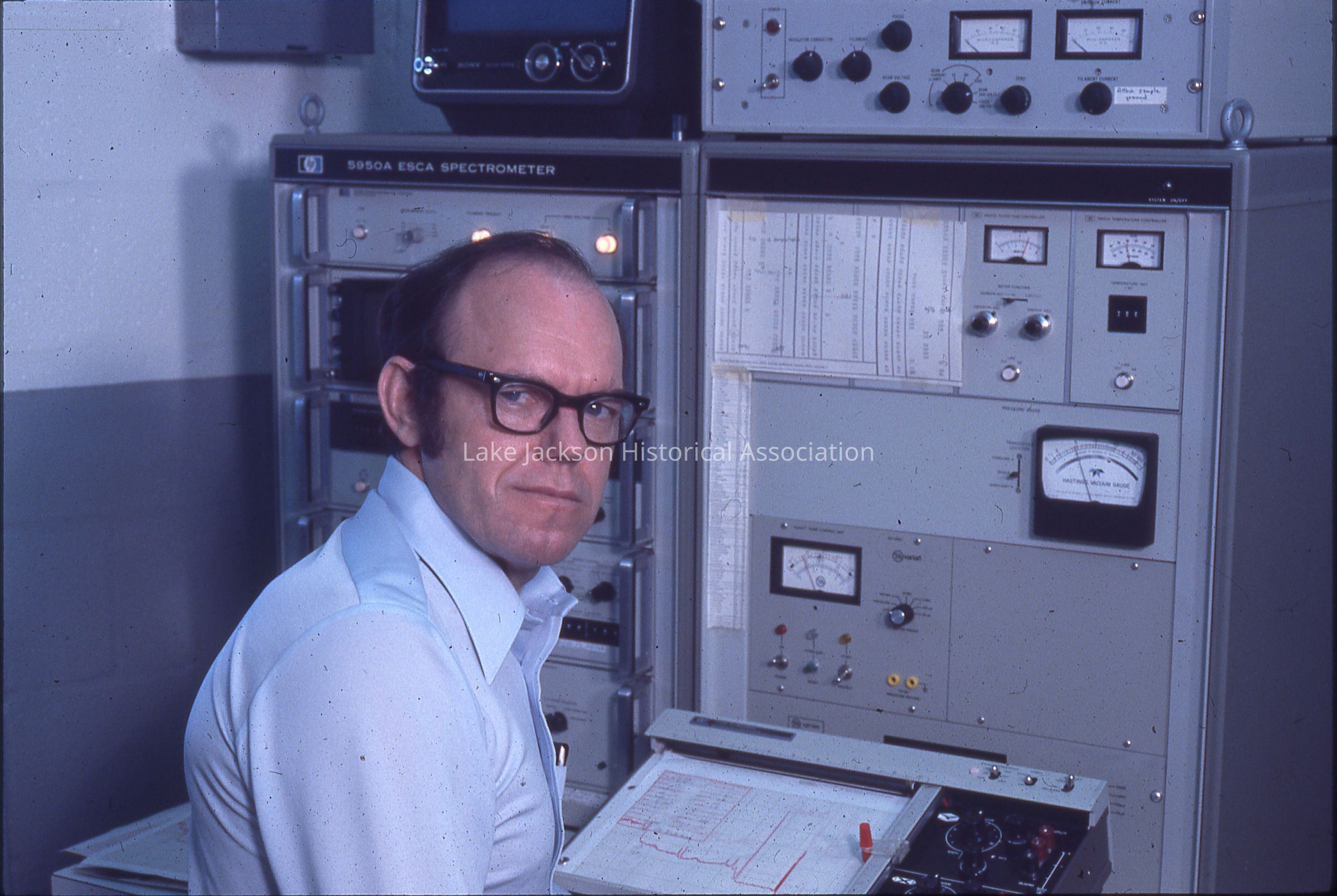 Color slide of Harry Spell in laboratory.Collection