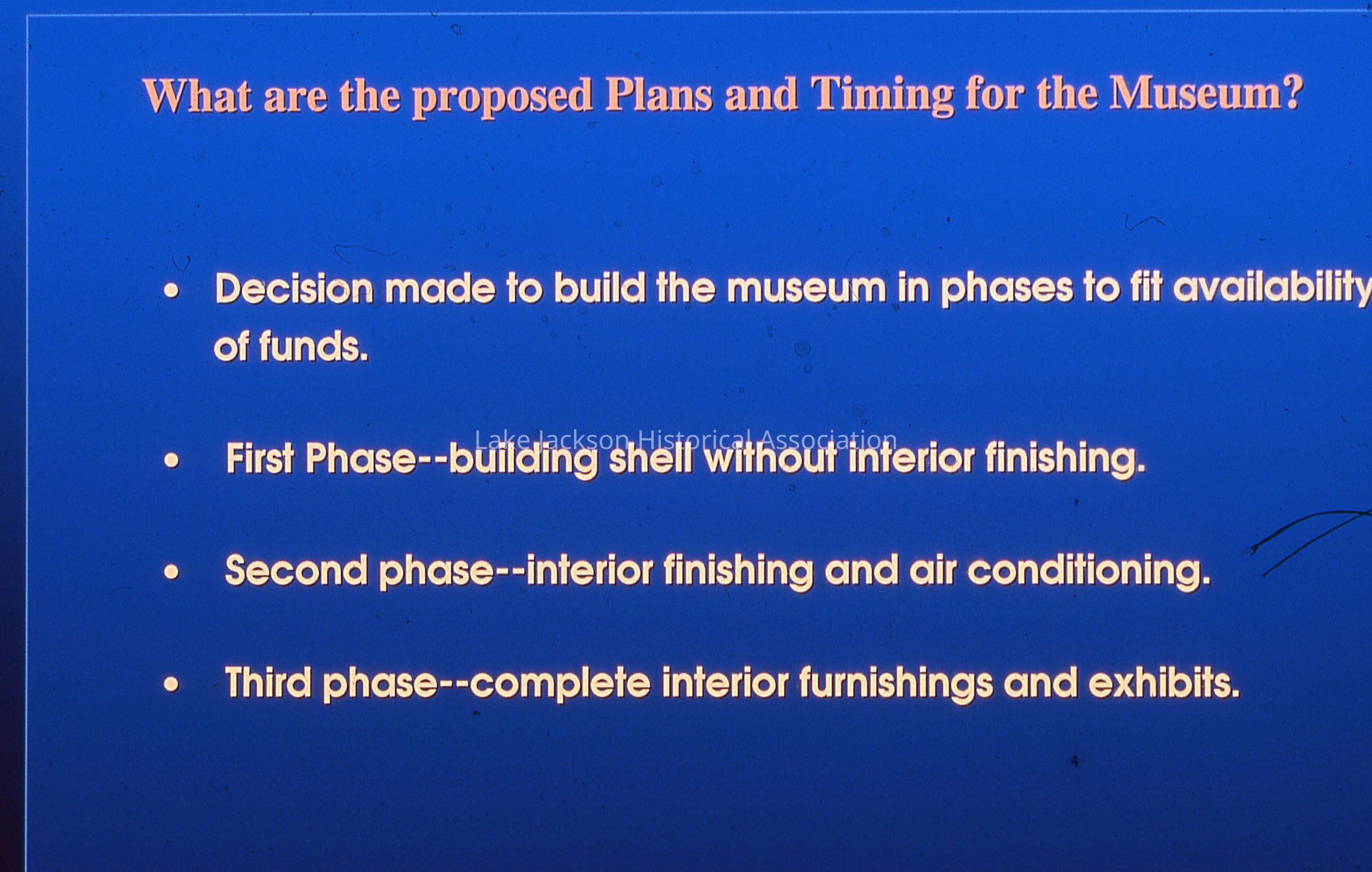 Color - Presentation Slide "What are Proposed Plans & Timing for the Museum"Collection