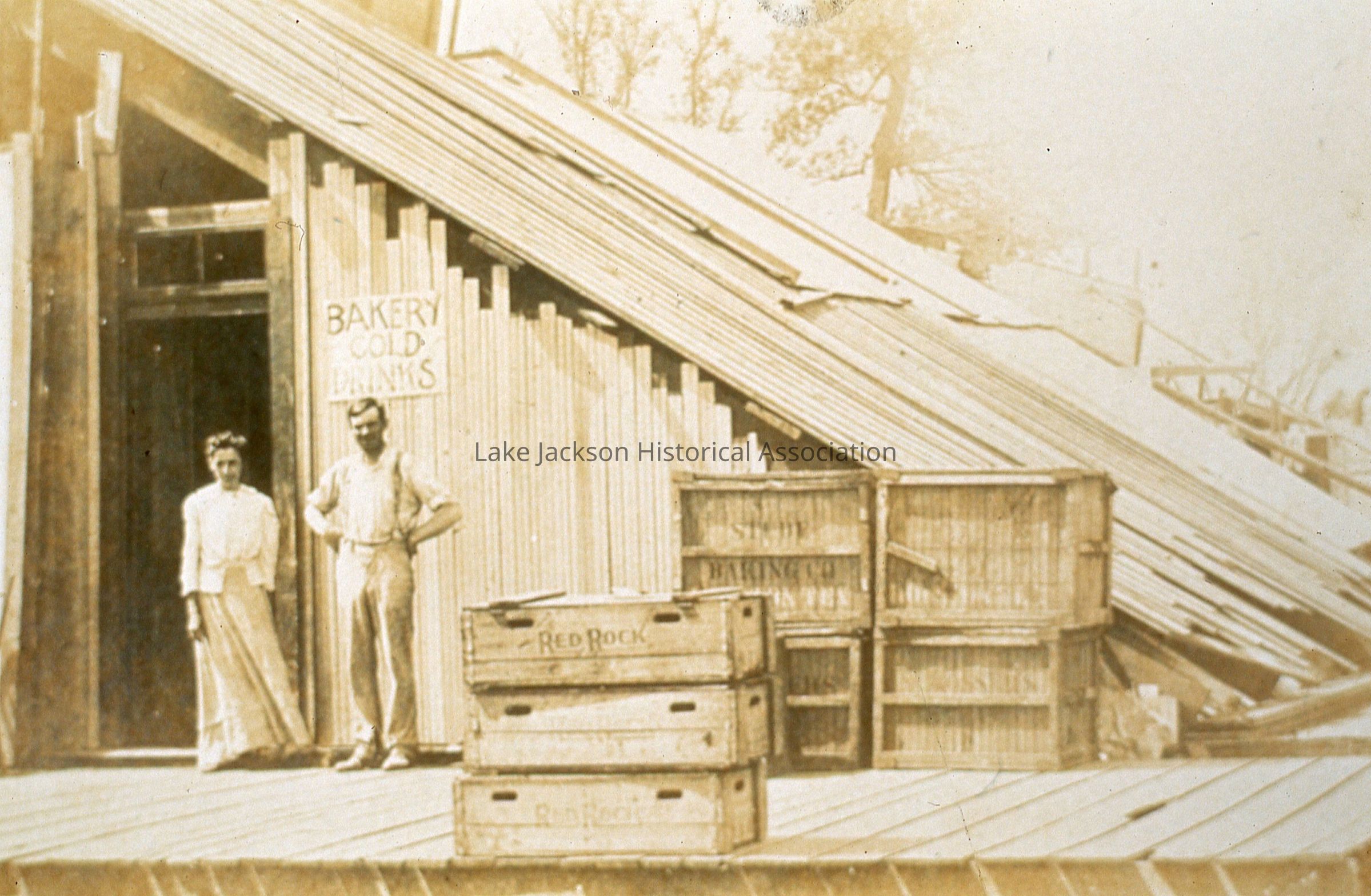 Man & Women in Front of Bakery - Sign Says "Bakery Cold Drinks" "Red Rock" BoxesCollection
