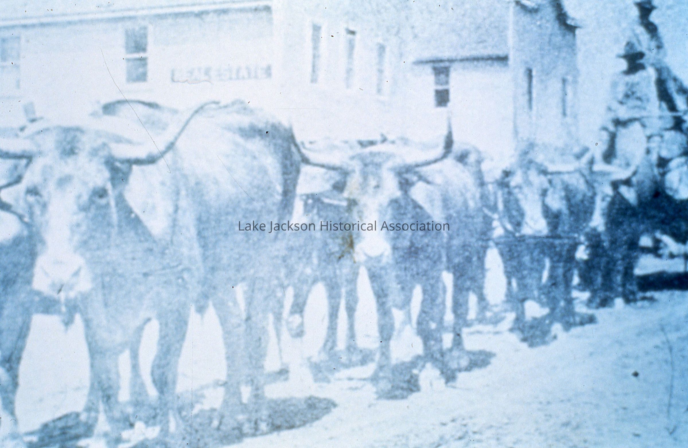 "Real Estate" Building in Background with Team of Longhorns Pulling a CartCollection
