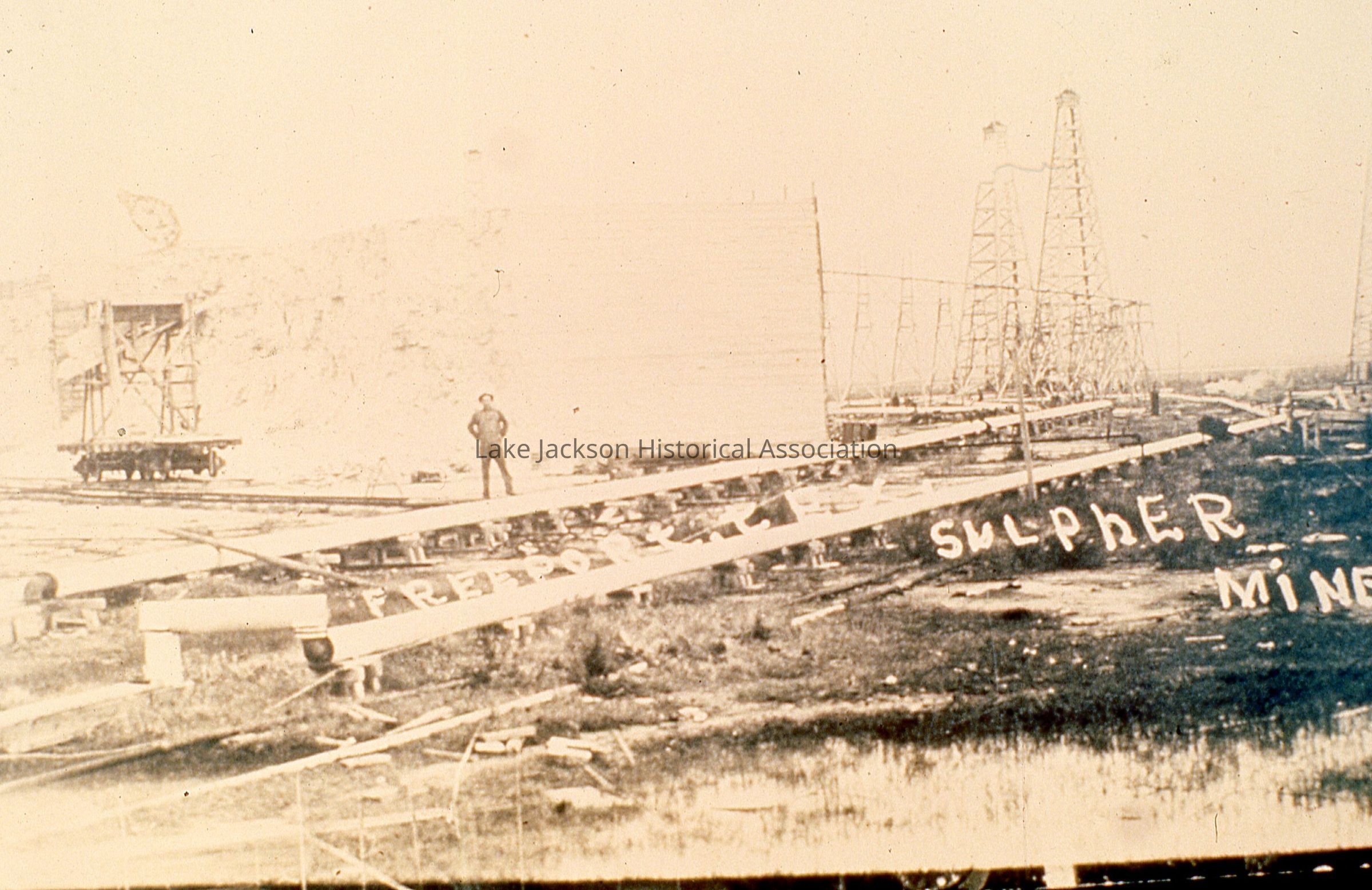 Black and White - Man Standing in Outside Area of the Freeport Texas Sulfur MineCollection
