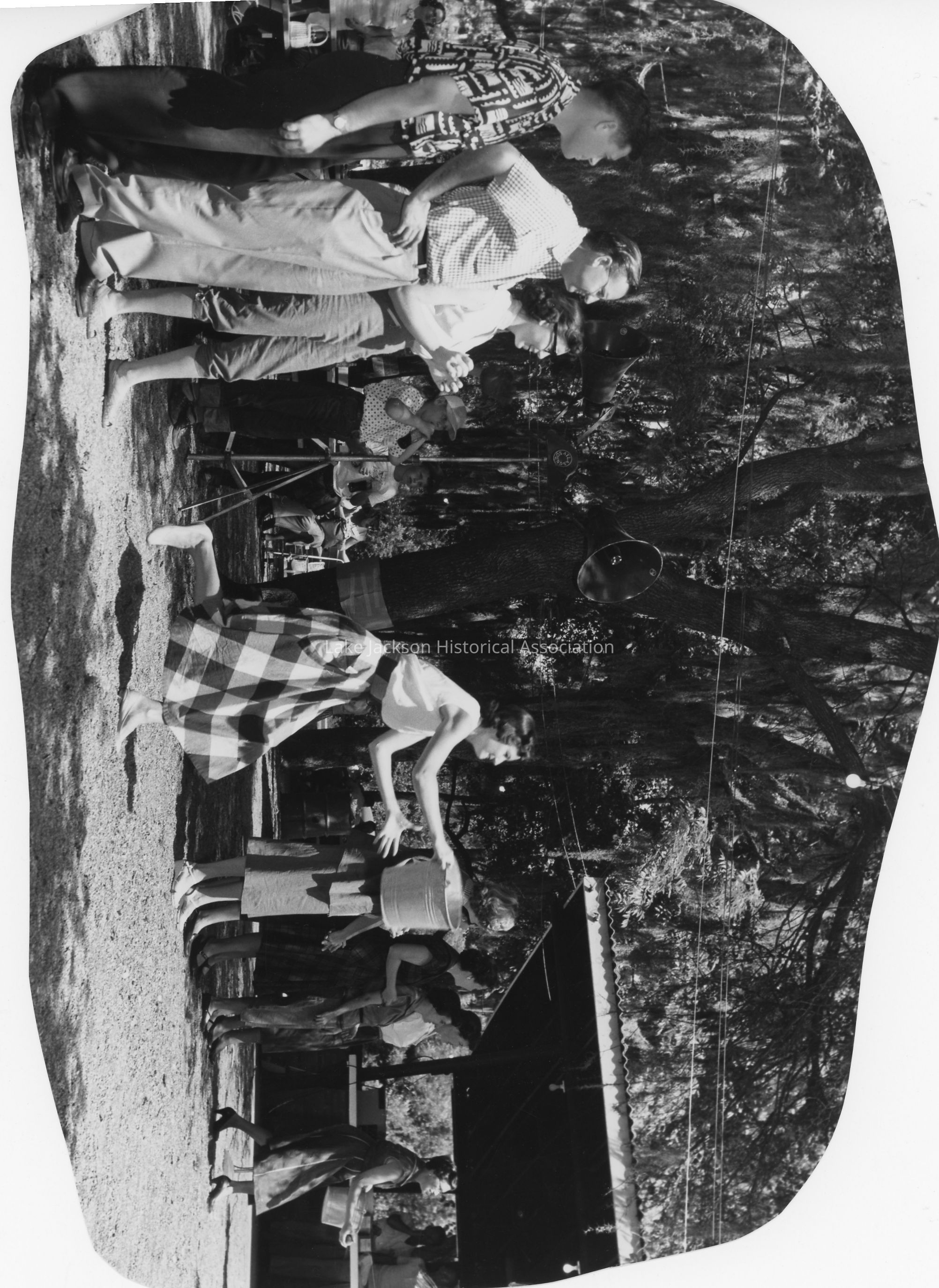 photograph of picnic in Dow Park - women throwing/catching buckets - 1954Collection