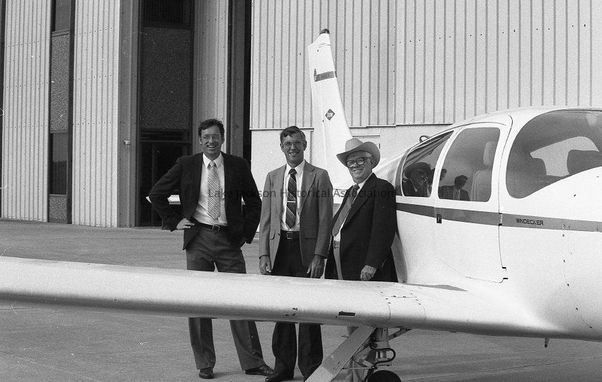 Black and white negatives with various photographs of people taken during the donation of the Windecker Eagle (N4195G) to the Lake Jackson Historical Association held at the Brazoria County Airport.Collection