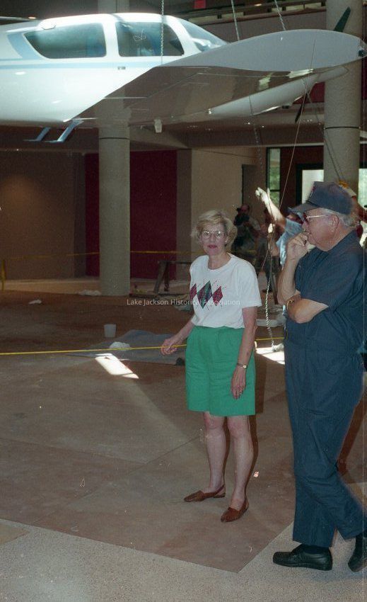 Black and white negatives with various photographs of people taken during the donation of the Windecker Eagle (N4195G) to the Lake Jackson Historical Association held at the Brazoria County Airport.Collection