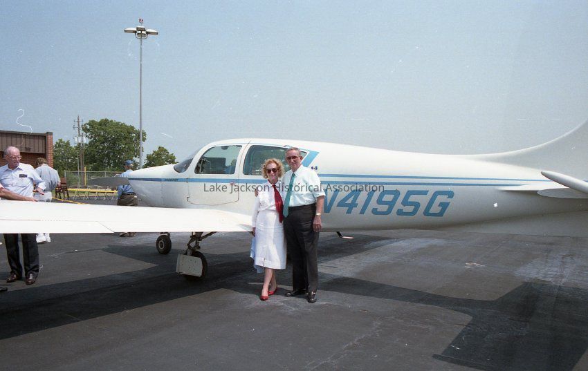 Black and white negatives with various photographs of people taken during the donation of the Windecker Eagle (N4195G) to the Lake Jackson Historical Association held at the Brazoria County Airport.Collection