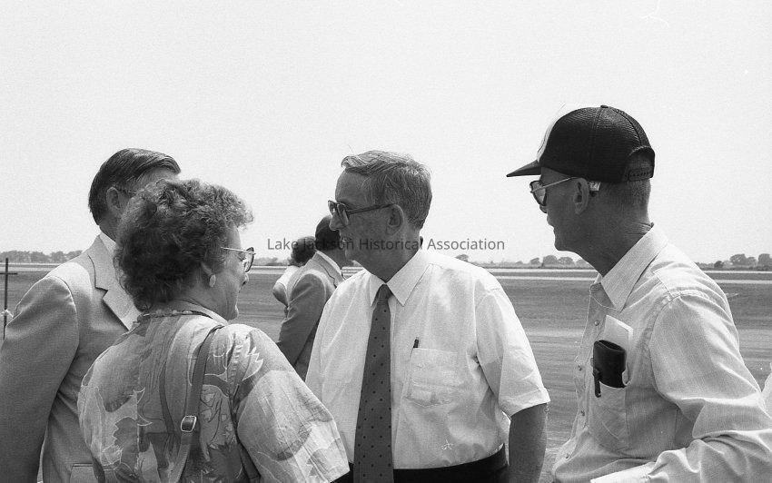 Black and white negatives with various photographs of people taken during the donation of the Windecker Eagle (N4195G) to the Lake Jackson Historical Association held at the Brazoria County Airport.Collection