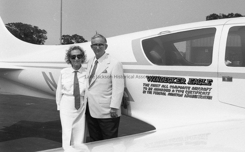 Black and white negatives with various photographs of people taken during the donation of the Windecker Eagle (N4195G) to the Lake Jackson Historical Association held at the Brazoria County Airport.Collection