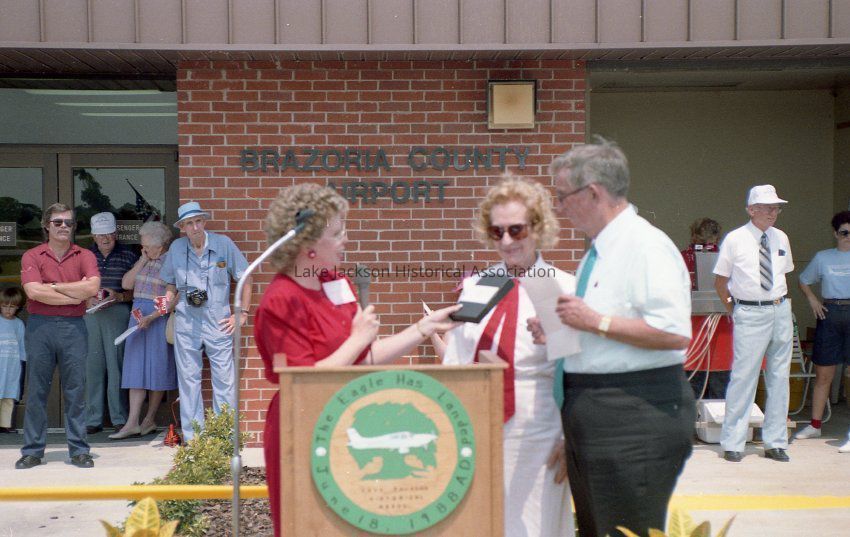 Color negatives with various photographs of people taken during the donation of the Windecker Eagle (N4195G) to the Lake Jackson Historical Association held at the Brazoria County Airport.Collection