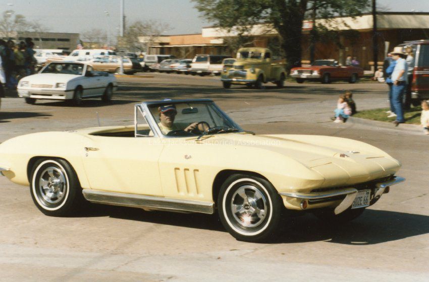 Color - Lake Jackson Historical Celebration for the sesquicentennial of Texas. Man driving a classic Corvette in the city parade.Collection