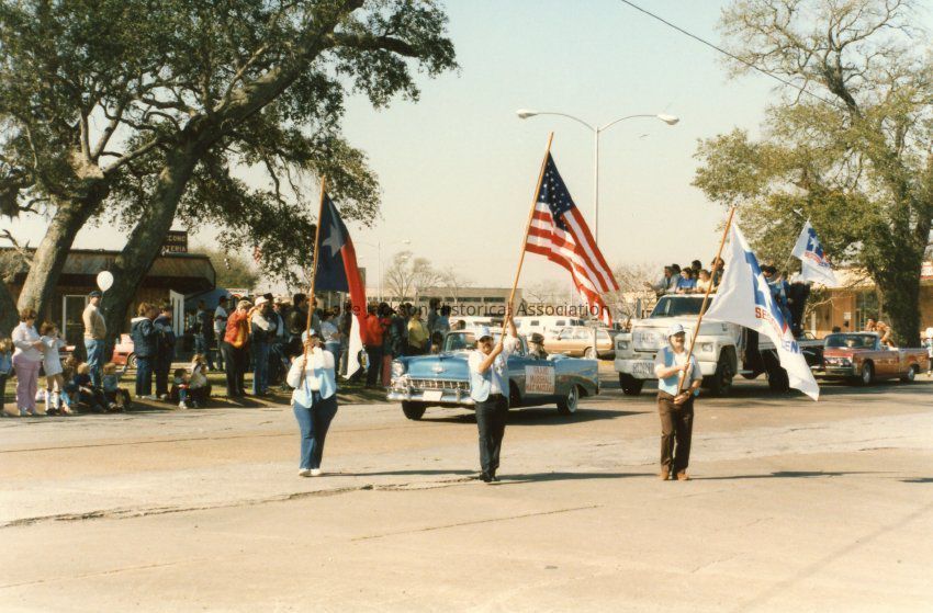 Color - Lake Jackson Historical Celebration for the sesquicentennial of Texas. People marching parade carring flags.Collection