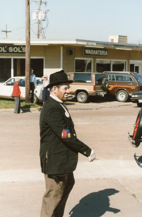 Color - Lake Jackson Historical Celebration for the sesquicentennial of Texas. Clown walking in city parade.Collection