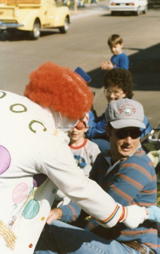 Color - Lake Jackson Historical Celebration for the sesquicentennial of Texas. Clown entertaining crowd in city parade.Collection