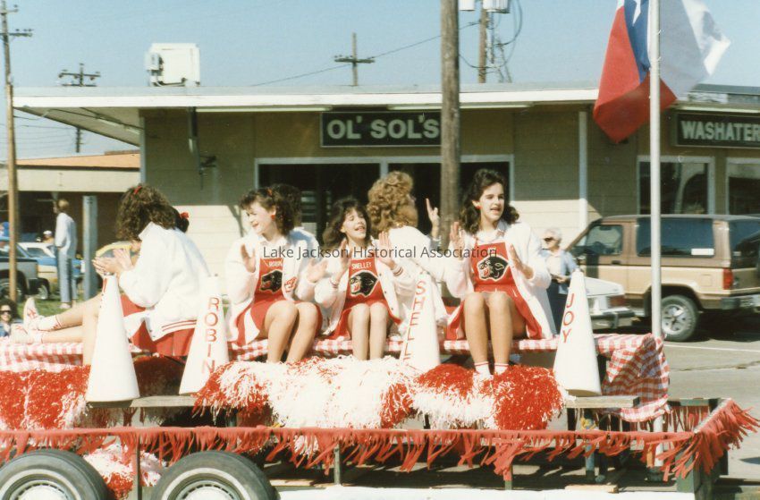 Color - Lake Jackson Historical Celebration for the sesquicentennial of Texas. Cheerleaders riding in a car in city parade.Collection