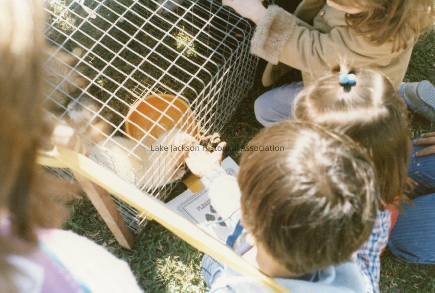 Color - Lake Jackson Historical Celebration for the sesquicentennial of Texas. Children playing with a caged animal.Collection