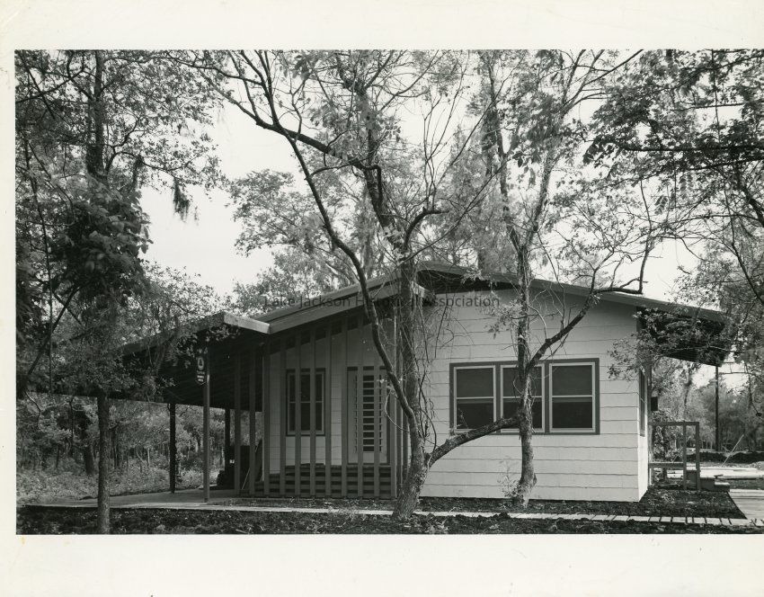 Black and White print - Lake Jackson Homes. The telephone building. Typical wood frame building.Collection