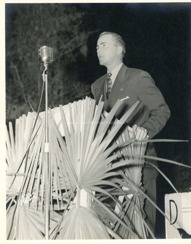 Black and White print - Lake Jackson Celebration - Unknown man speaking.Collection