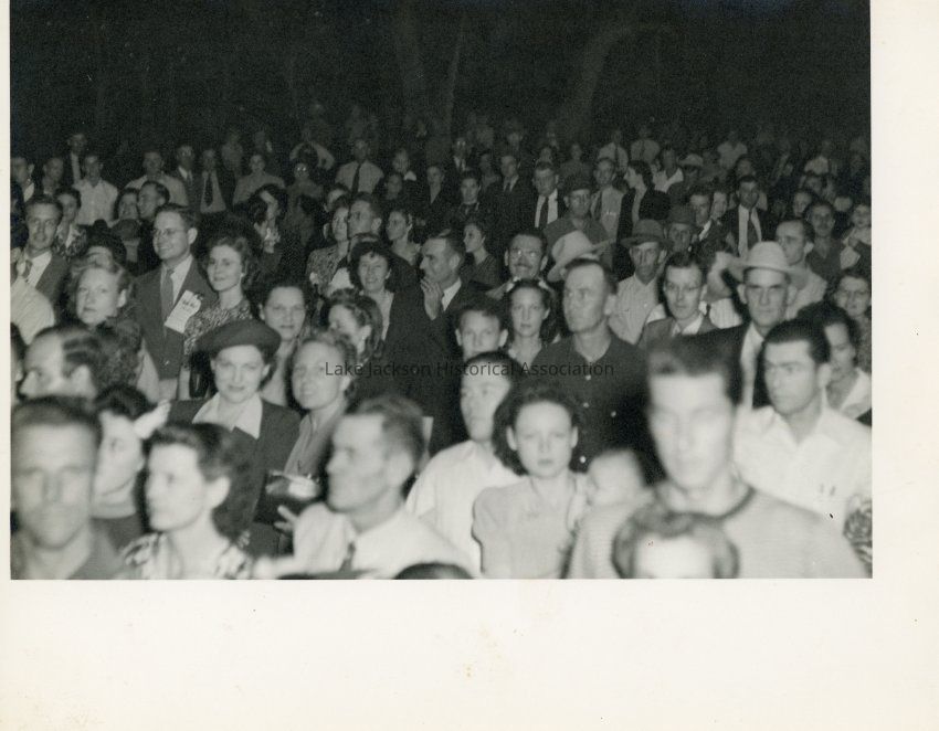 Black and White print - Lake Jackson Celebration - A crowd of people out doors under the trees.Collection