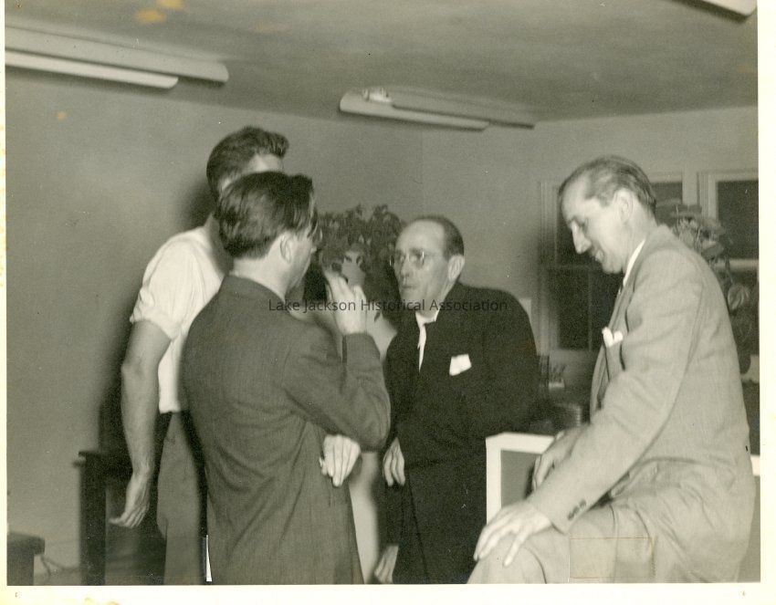 Black and White print - Lake Jackson Dow's offices. Carlos Masterson with Alden Dow and Pfeiffer.Collection