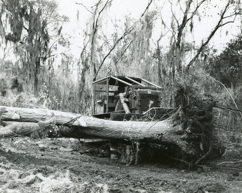 Black and White print - Lake Jackson town construction. Bulldozer clearing trees.Collection