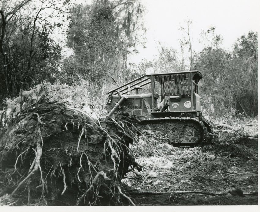 Black and White print - Lake Jackson town construction. Bulldozer clearing brush and tress.Collection