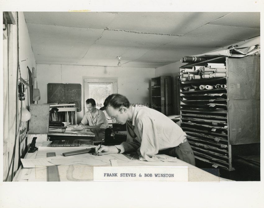 Black and White print - Lake Jackson town construction. Draftsmen working on city design.Collection