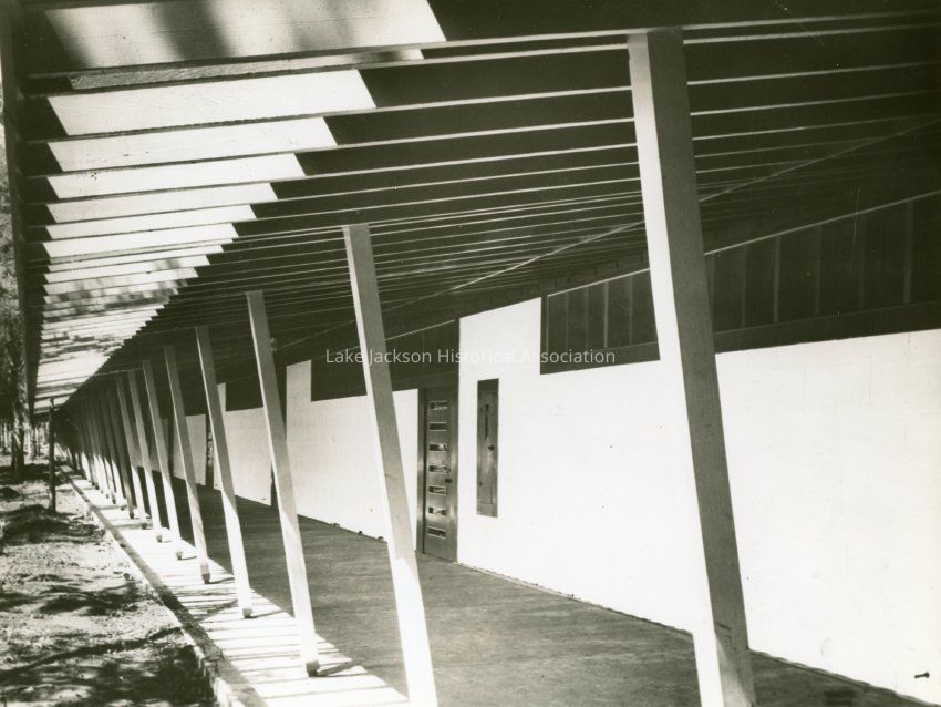 Black and White print - Lake Jackson town construction. Front of Lake Jackson school. Ney elementry.Collection
