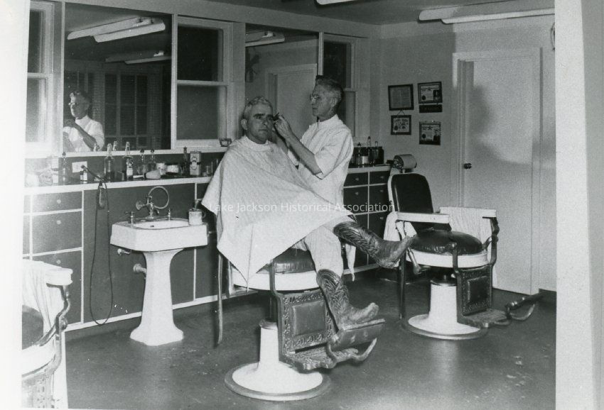 Black and White print - Lake Jackson town construction. Barber Shop.Collection