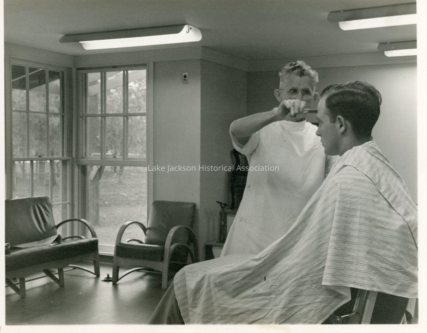 Black and White print - Lake Jackson town construction. Tom Vaughan's Barber Shop.Collection