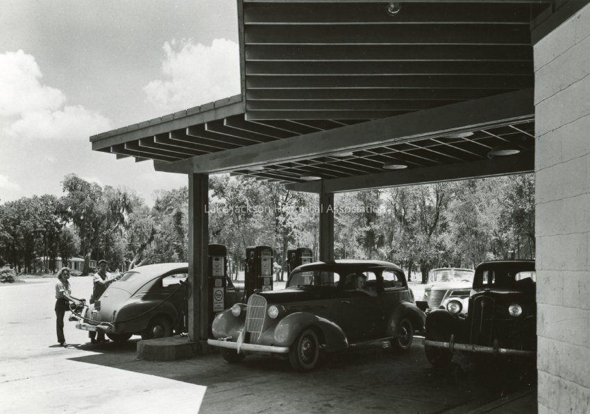 Black and White print - Lake Jackson town construction. Gasoline station downtown.Collection