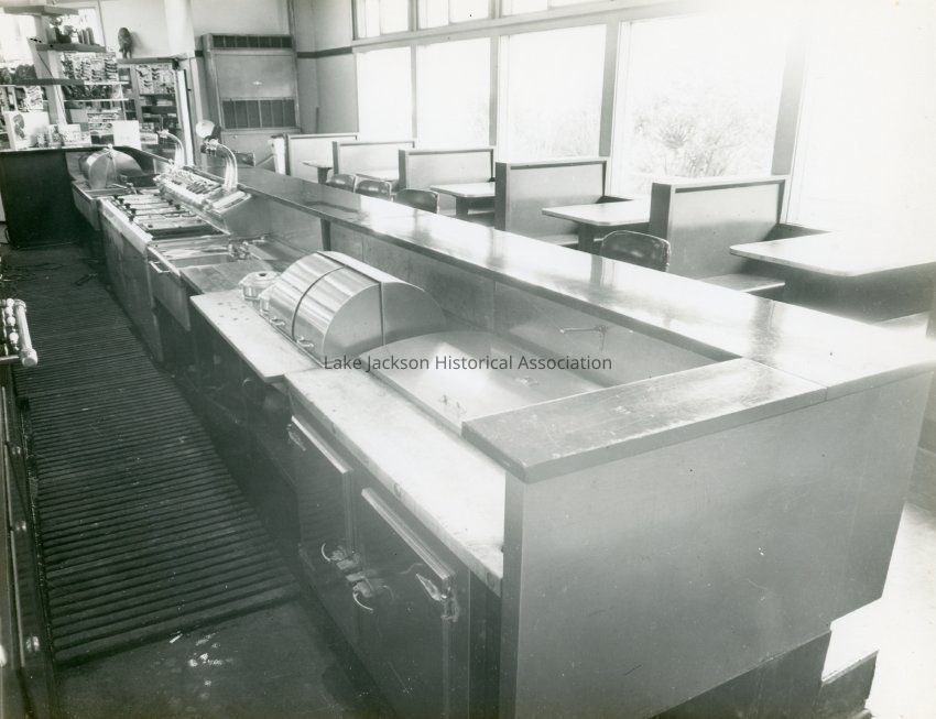 Black and White print - Lake Jackson town construction. Inside diner.Collection