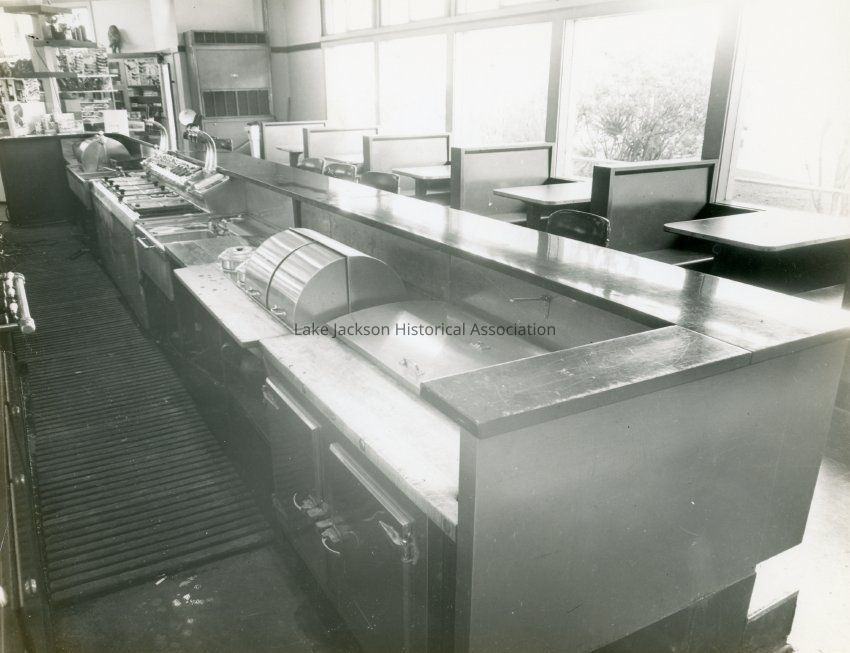 Black and White print - Lake Jackson town construction. Inside Diner.Collection