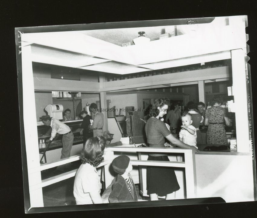 Black and White print - Lake Jackson town construction. Inside downtown business..Collection
