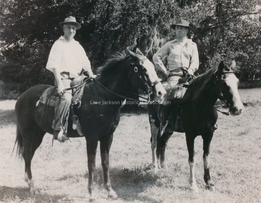 Black and White - Alden Dow on hroseback accompanied by unknown man.Collection