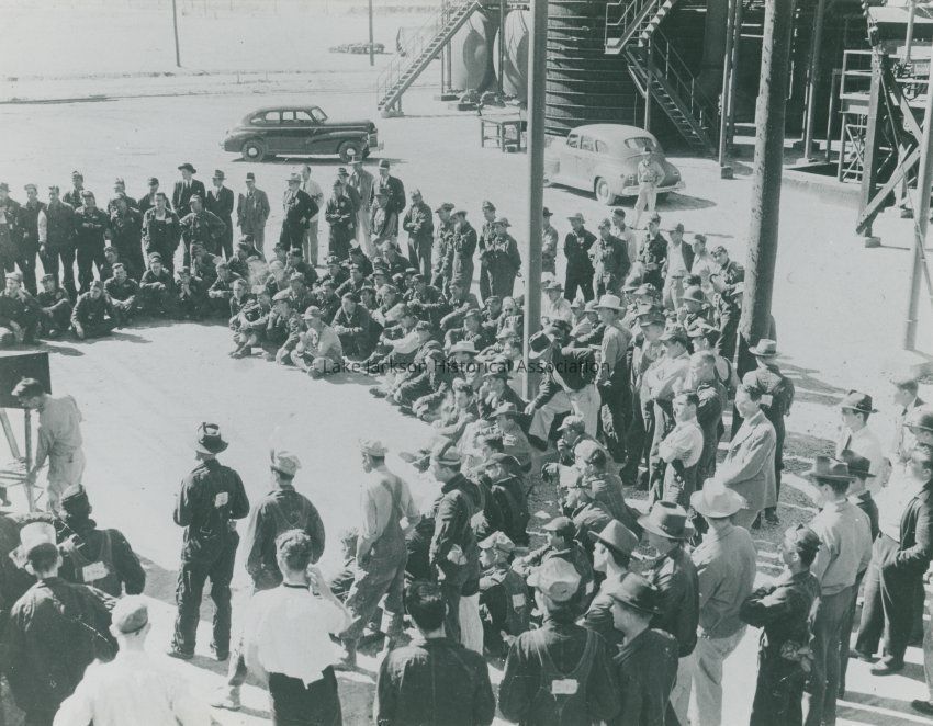 Black and White - Gathering of workers inside the plant.Collection