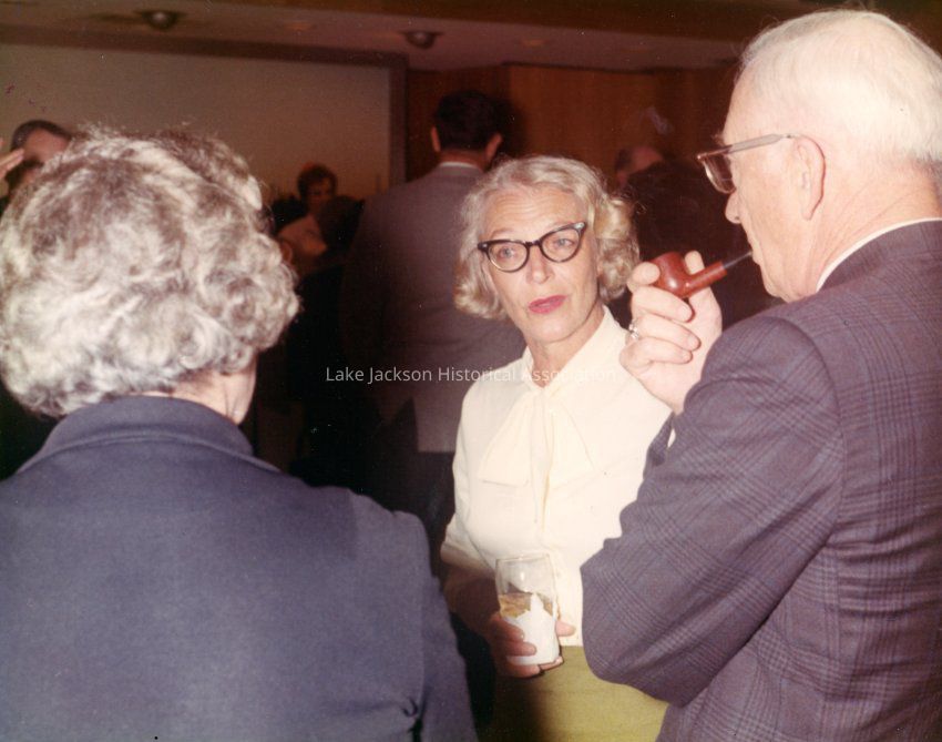 Two unidentified women and a man at Nelson Griswold's retirement party held May 13, 1966 in the Dow Plant B Cafeteria.Collection