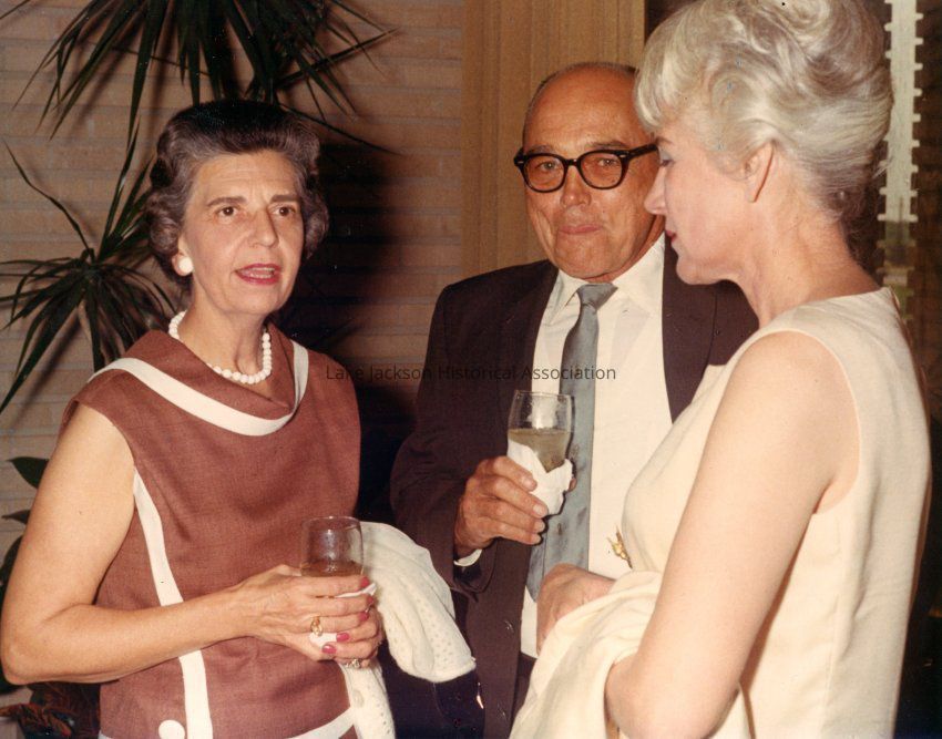Two unidentified women and a man at Nelson Griswold's retirement party at Dow Plant B Cafeteria in Freeport, Texas.Collection