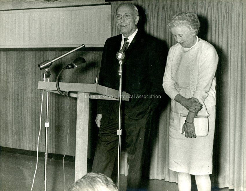 Mr. and Mrs. Nelson D. Griswold at Nelson Griswold's retirement party on May 13, 1966 at the Dow Plant B Cafeteria in Freeport, Texas.Collection