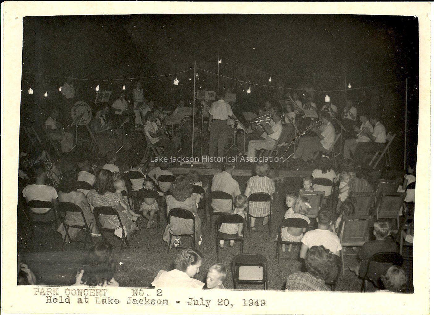 Black & white photo of Park Concert # 2 held at Lake Jackson on July 20, 1949.Collection