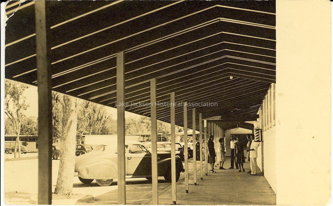 A black & white postcard of South Parking Place in Lake Jackson.Collection