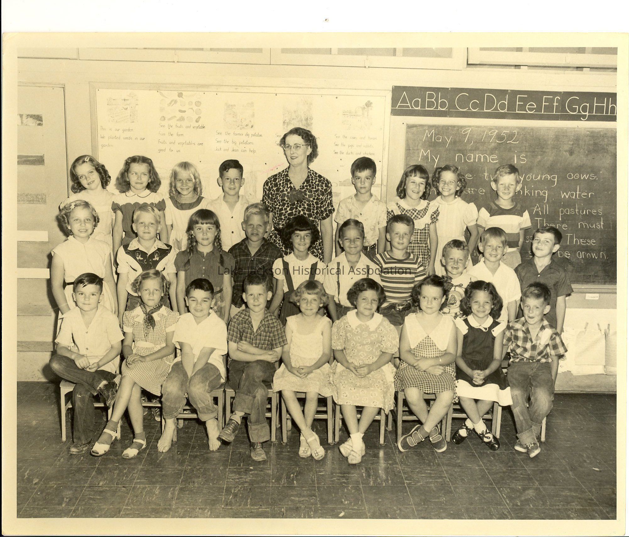 Black and white classroom photo of Mrs. Irene Jones' 1951-1952 class at Lake Jackson Elementary.