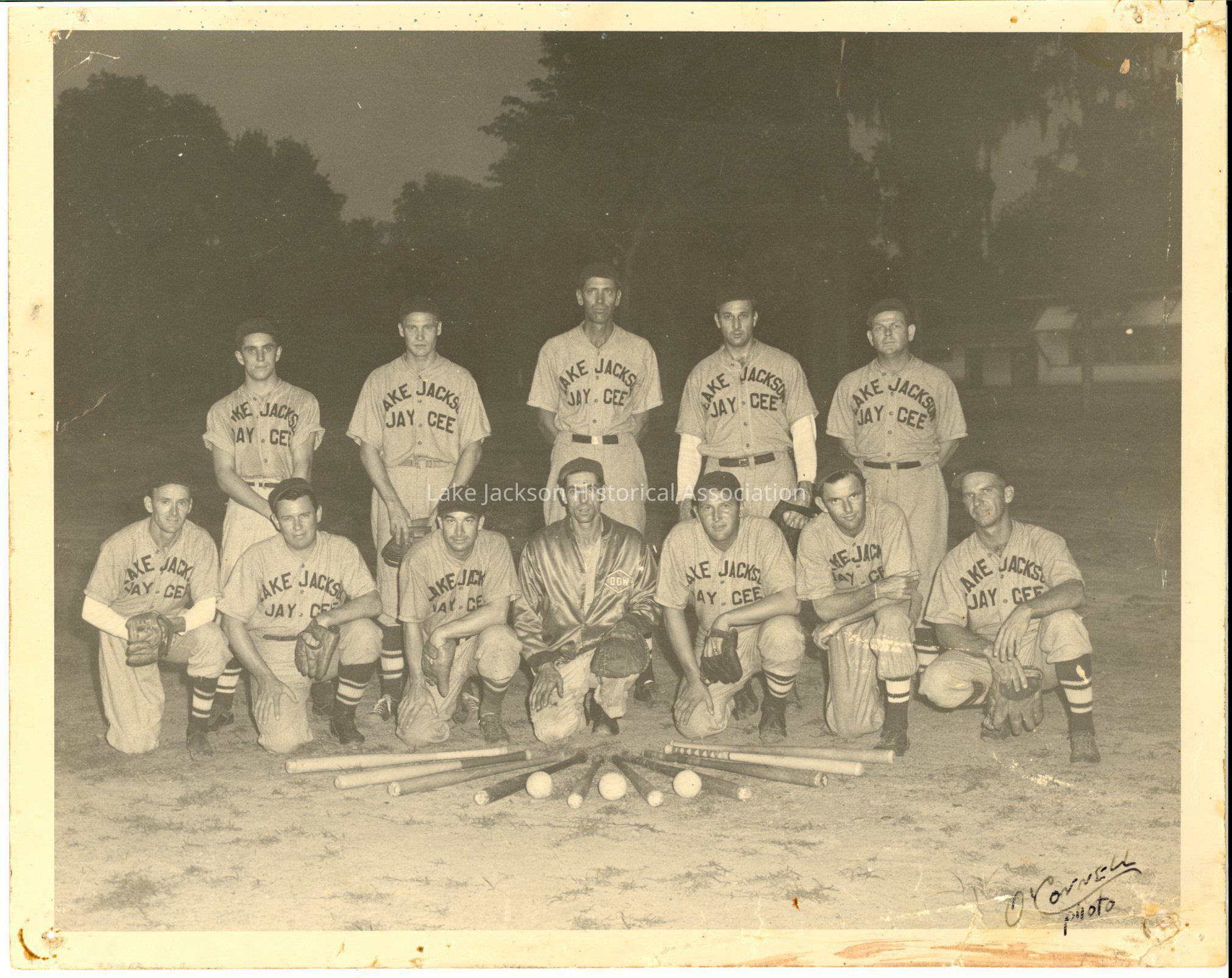 Black and white of the Lake Jackson Jaycee ball team. This ball team was forerunner of the Lake Jackson Gators.