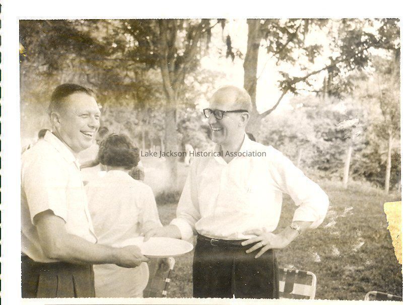 Black and white photo of early Lake Jackson residents at a picnic at Lake Jackson.