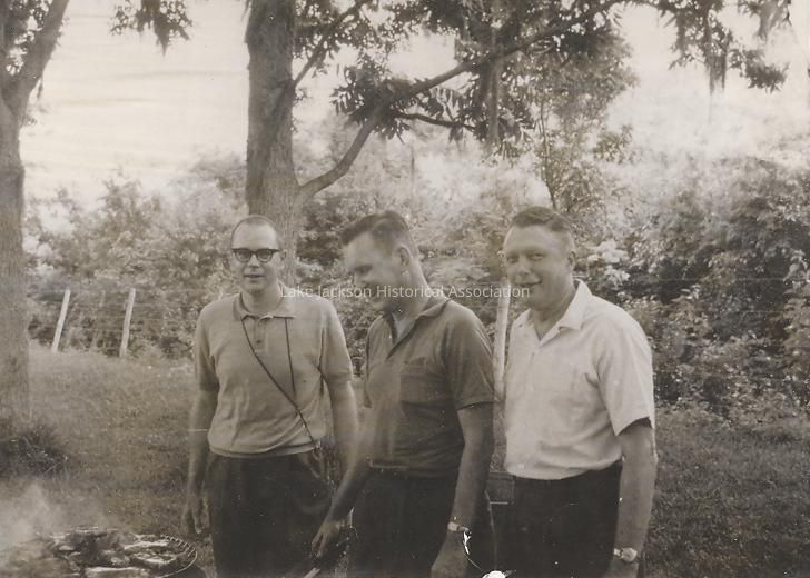 Black and white photo of early Lake Jackson residents at a picnic at Lake Jackson.