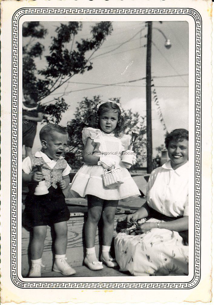 Black and white photo of May 1955 Plantation Days Lollipop King and Queen