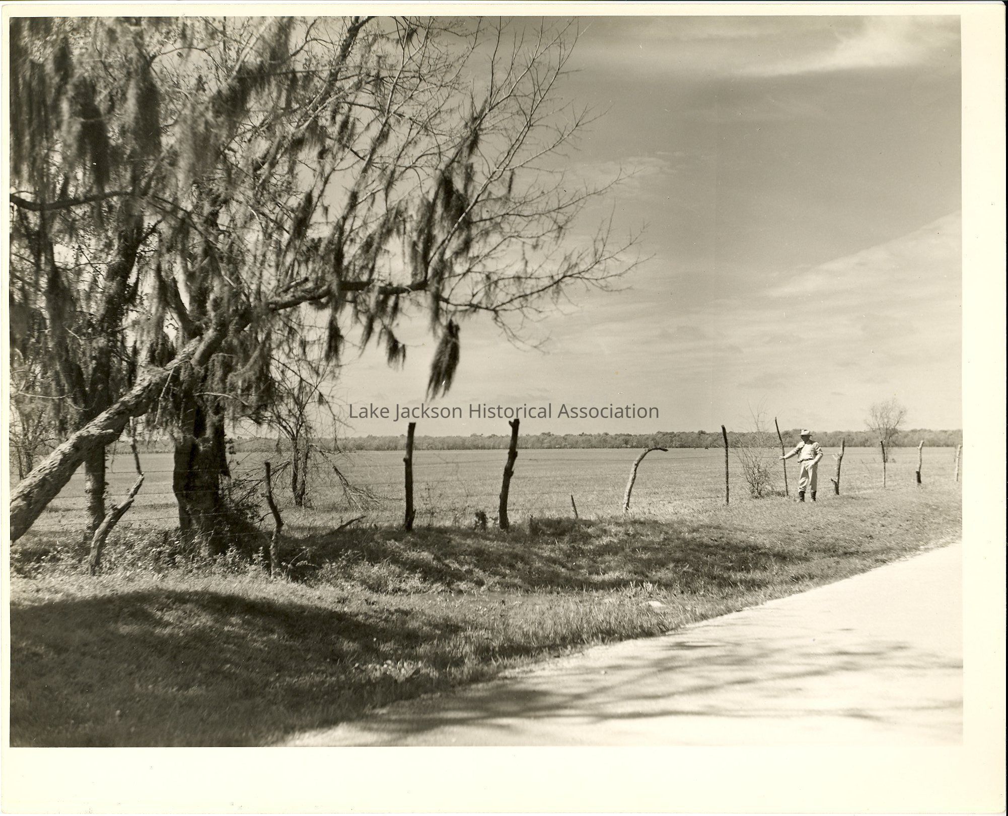 A black and white photo of Captain Brown standing by a fenced field.Collection